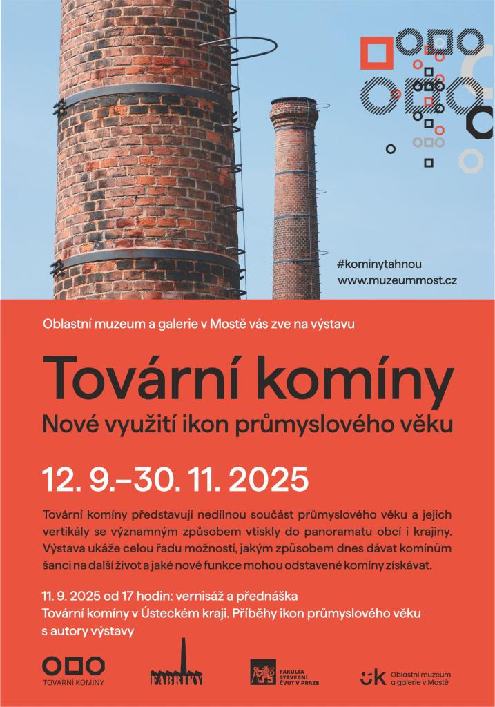 Oblastní muzeum a galerie v Mostě pořádá výstavu zaměřenou na tovární komíny, které hrají významnou roli v krajině a panoramatu našich obcí. Výstava se zaměří na inovativní způsoby, jakým lze komíny znovu využít a přetvořit. Navštivte nás a objevte možnosti druhého života těchto symbolů industriálního věku.